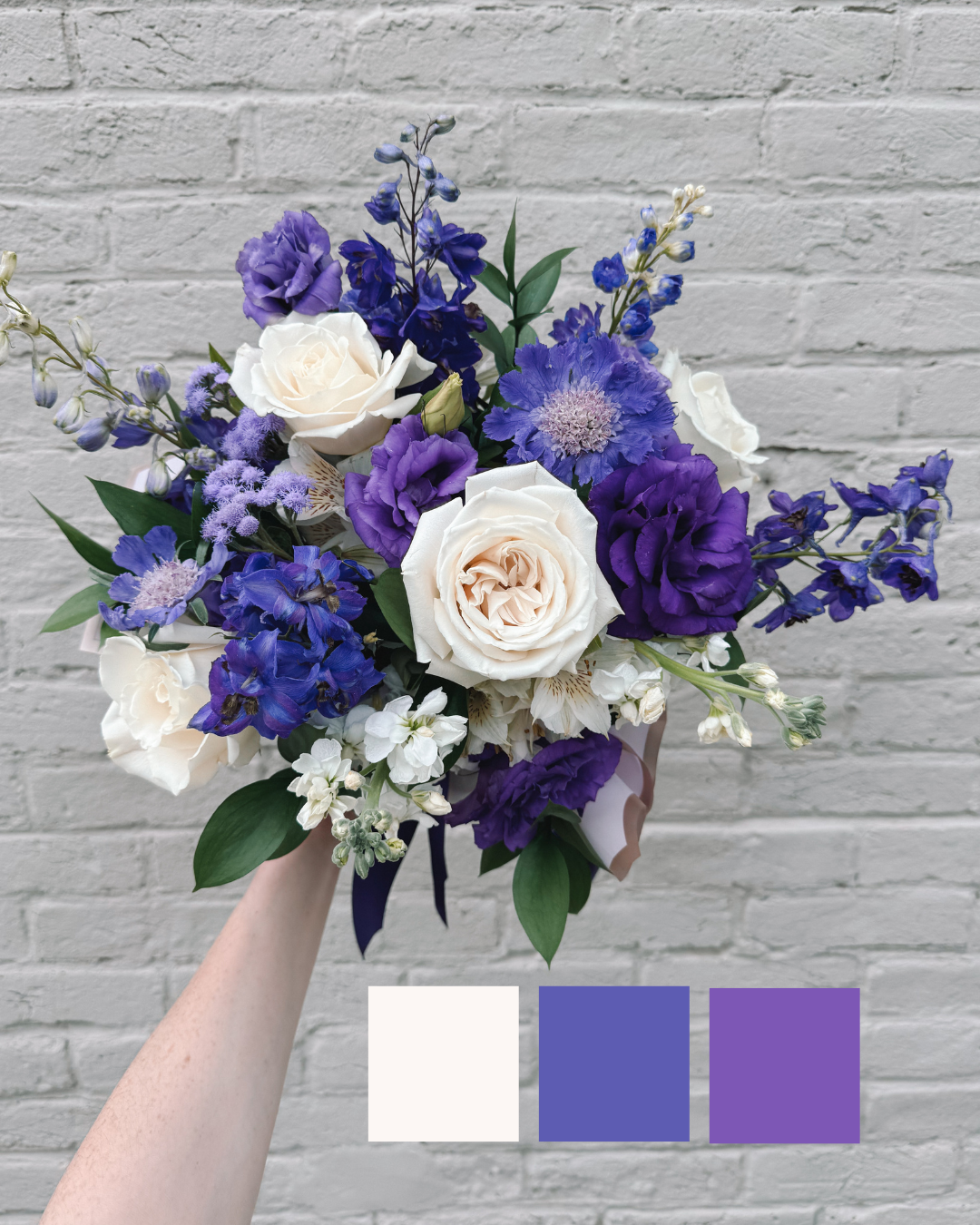 The arrangement you or your recipient will receive will contain flowers aligning with the color palette shown in the photo- specific flower types will vary based on what is fresh and in season!